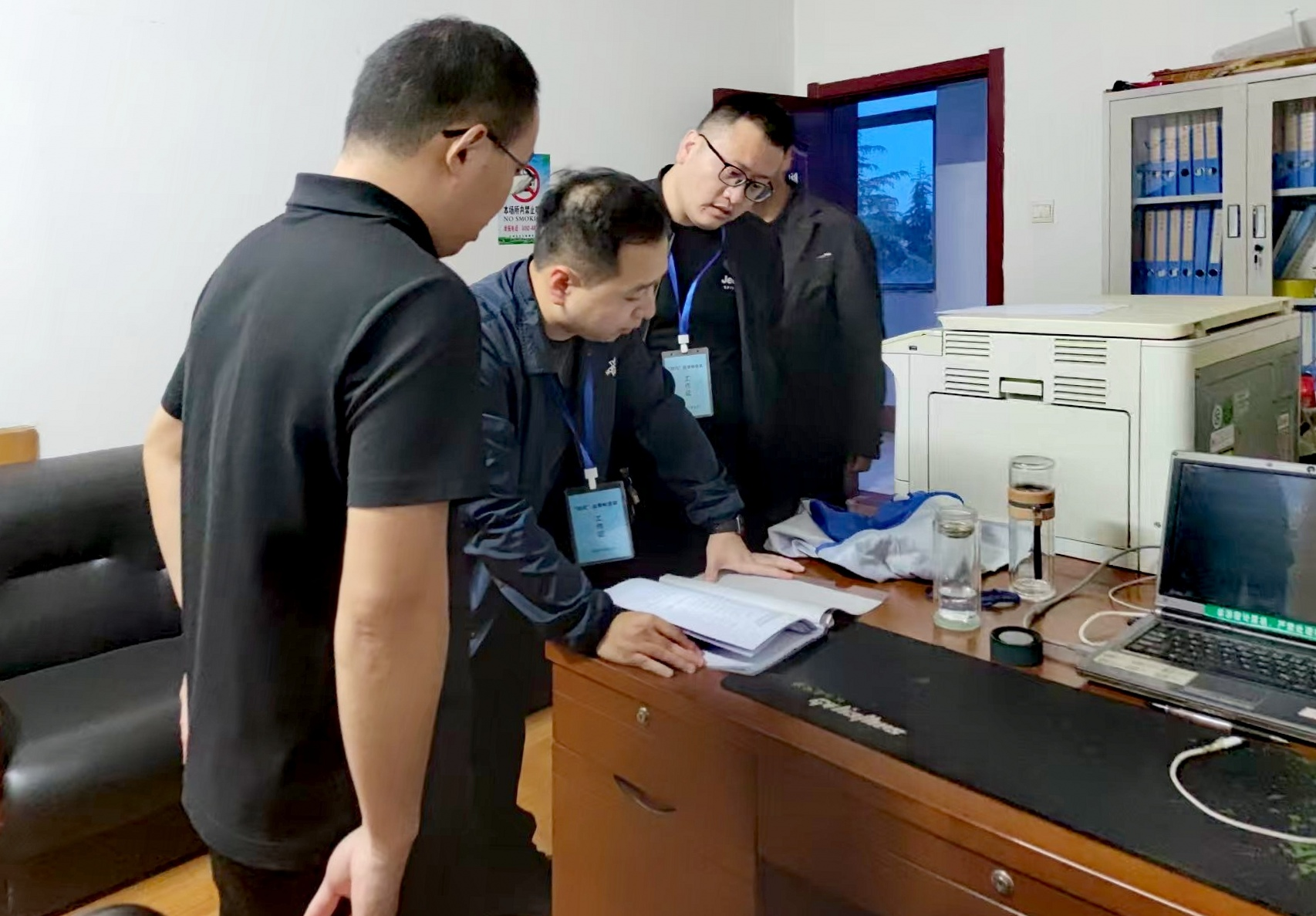 鹤山区纪委监委在山城区住建局检查值班值守、违规饮酒、公车封存等情况。