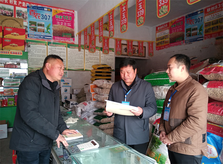 杞县纪委监委通过“室组”联动工作机制整合监督力量,采取实地走访、查看台账等方式对春耕物资储备量开展监督检查。图为县纪检监察干部在杞县苏木乡苏木庄稼医院向了解农资储备销售情况。(徐照恒 摄)