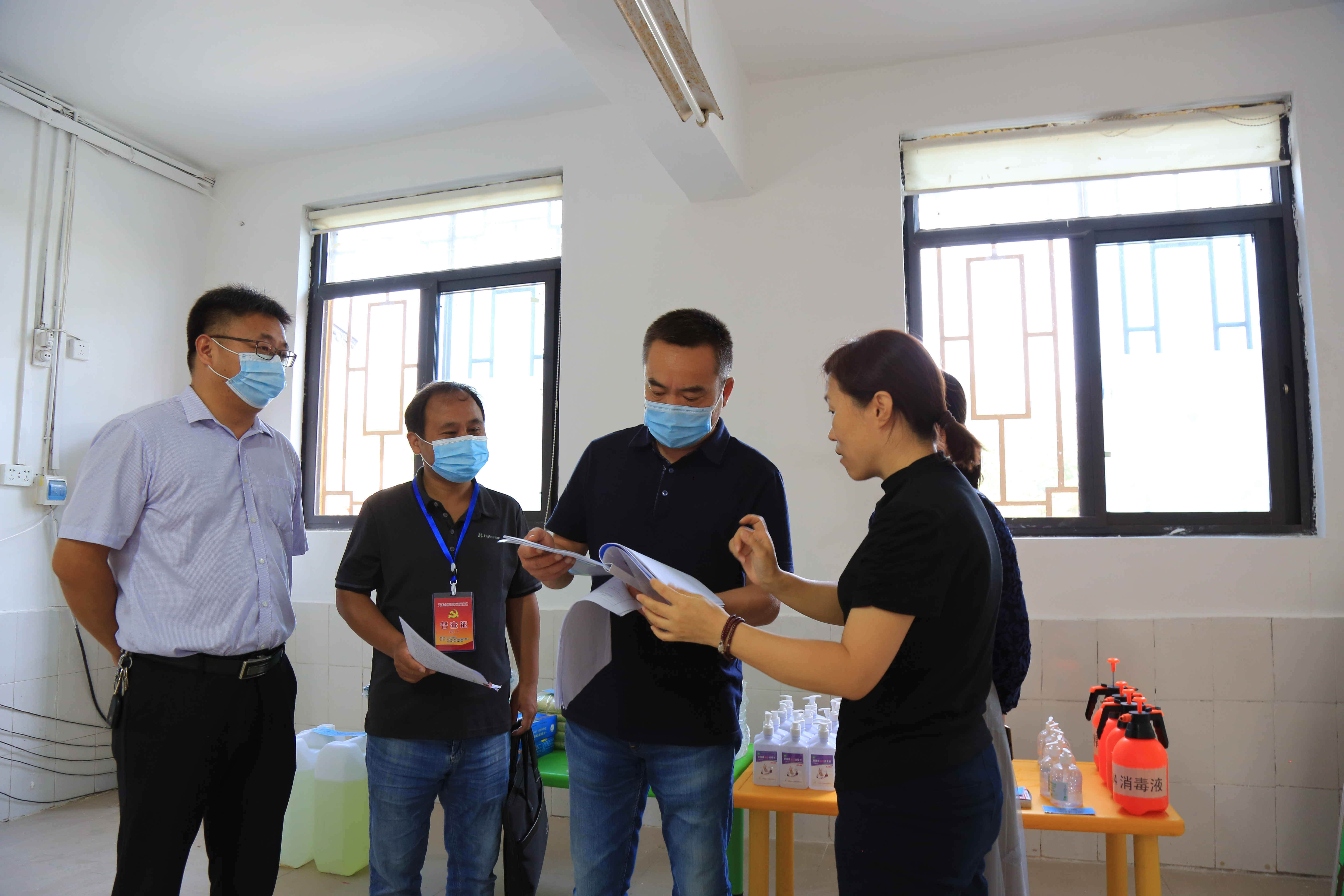 秋季开学在即,禹王台区纪委监委成立督查组,到辖区学校、幼儿园,对秋季开学疫情防控工作开展监督检查,压紧压实校园疫情防控责任。图为近日,督查组在新征幼儿园查看师生的健康上报及排查、物资储备等工作的落实情况。(杨精精 摄)