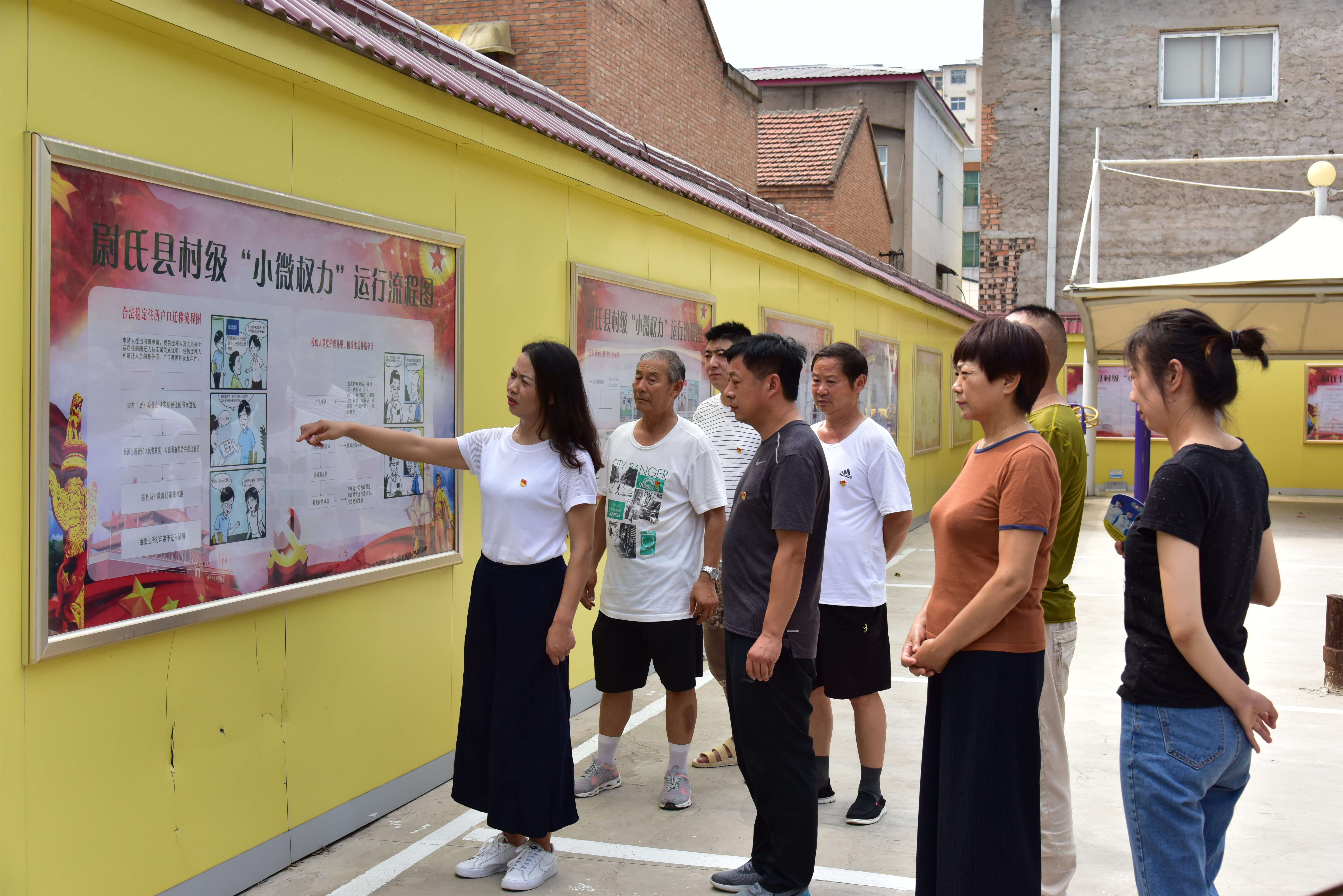 尉氏县城关镇小东门社区将村级“小微权力”制作成流程图上墙公示,政策运行规范透明,群众不跑冤枉路。(周长岭 摄)