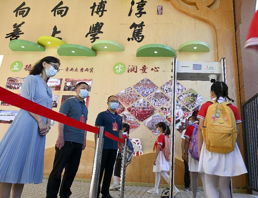 源汇区纪委监委派驻第九纪检监察组在许慎小学实地监督检查学生入校防疫措施落实情况。