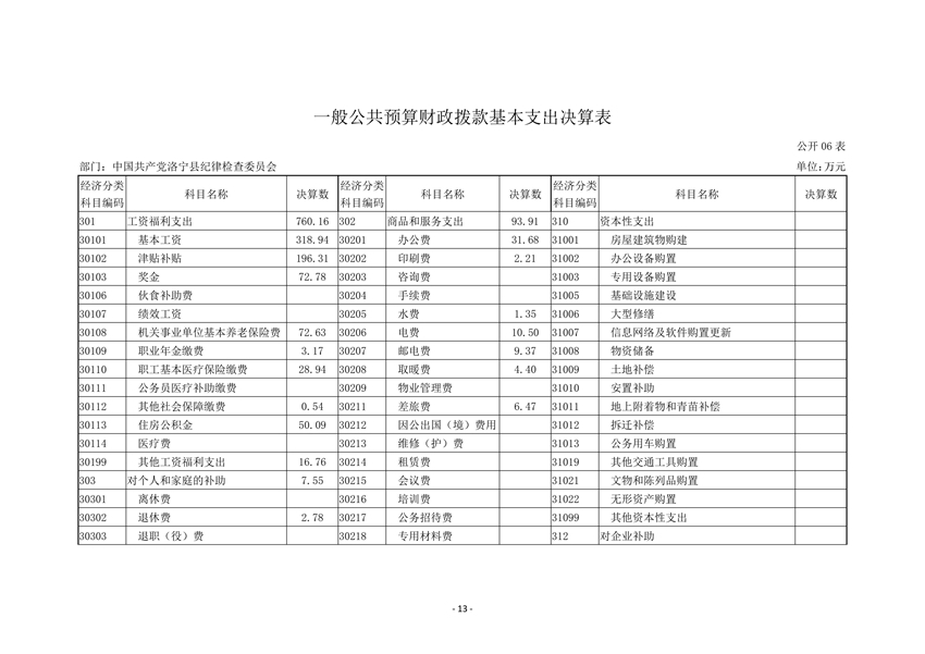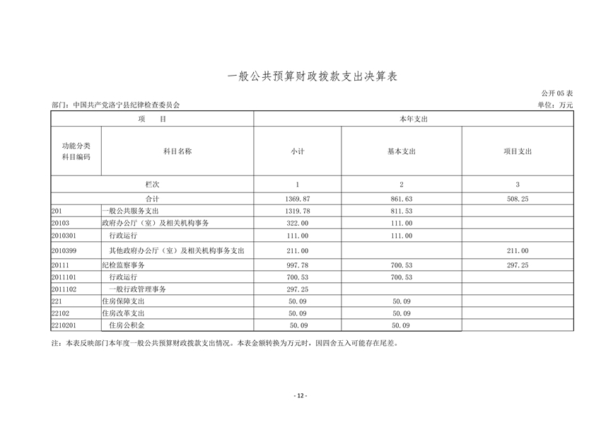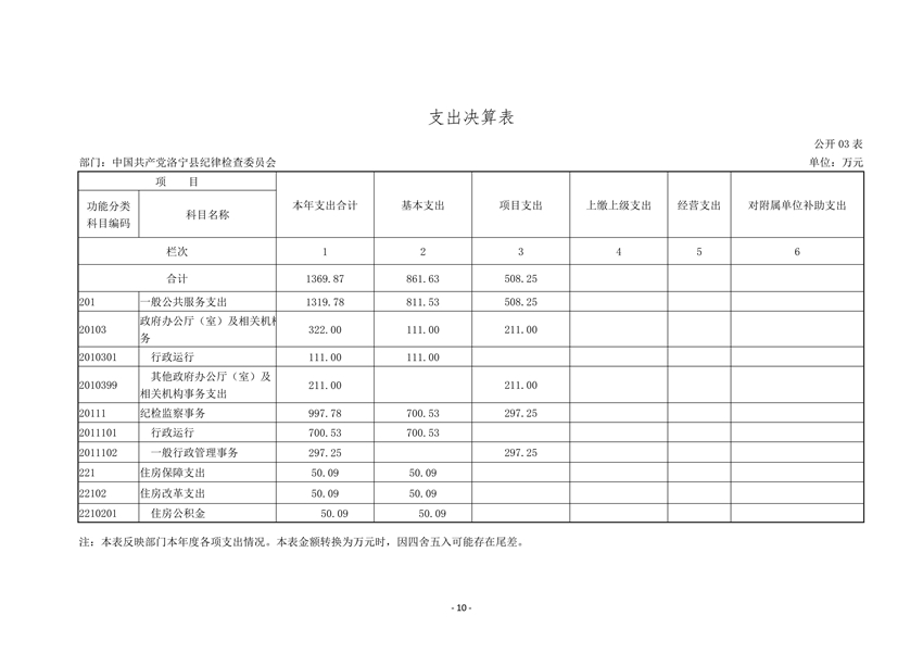 中共洛宁县纪委2020年度部门决算