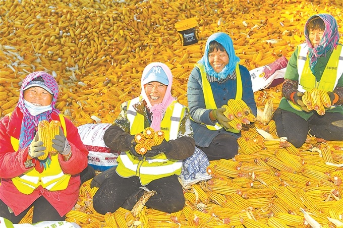 丰收,映照着人民对美好生活的向往。时下,吉林省秋粮收获已超95%,玉米收获也接近尾声。图为农民在公主岭市环岭街道土城子村志和农机服务专业合作社内手捧分拣后的玉米。 新华社记者 许畅 摄