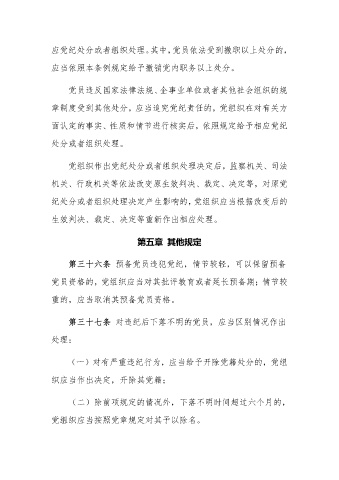 第三十六条 预备党员违犯党纪,情节较轻,可以保留预备