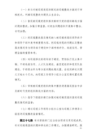 第三十七条 有关职能部门应当结合职责运用巡视成果,
