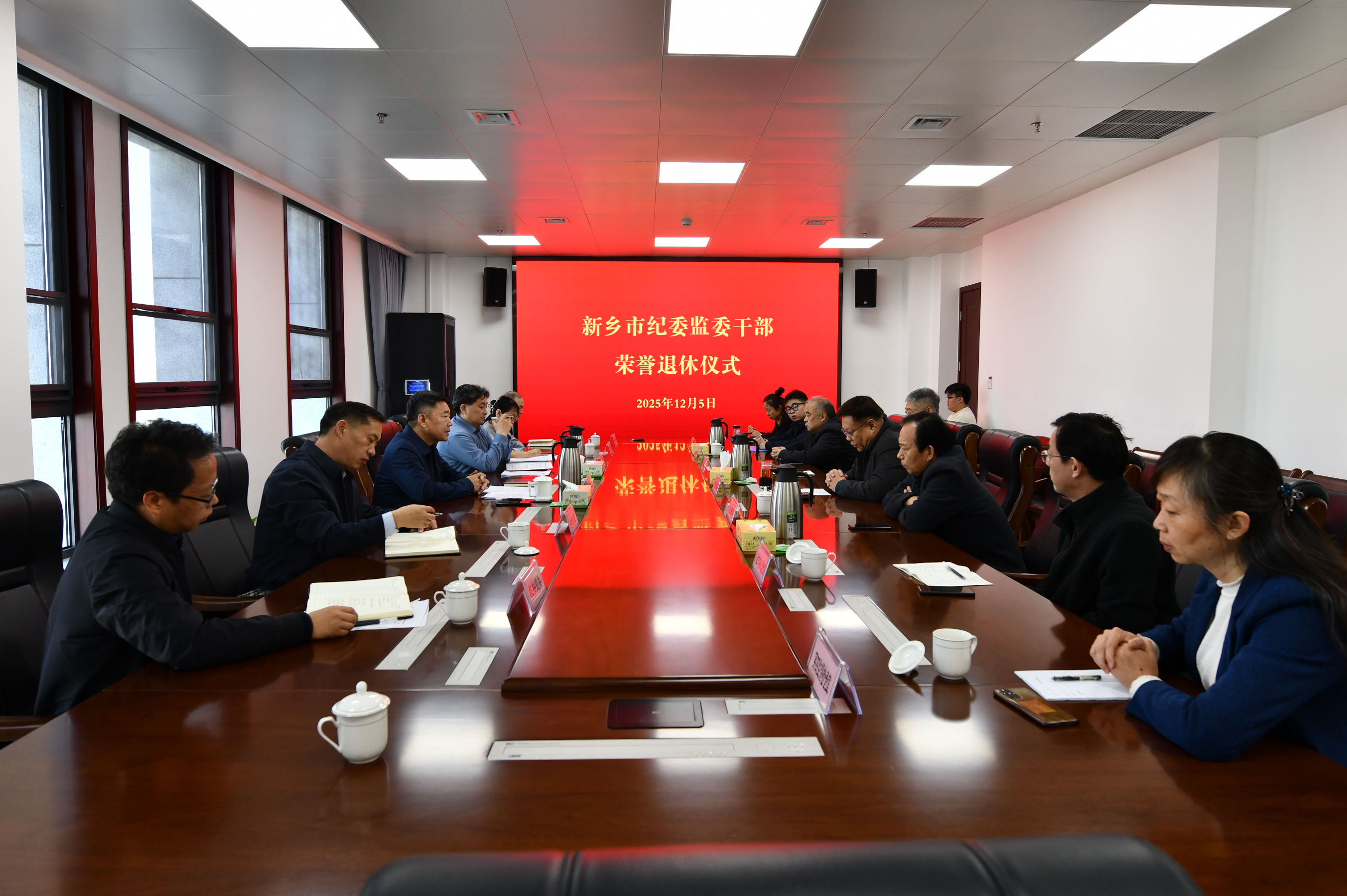 近日,市纪委监委举行纪检监察干部荣誉退休仪式,市纪委副书记、市监委副主任孙福海,市纪委常委、秘书长谢玉海参加活动。
