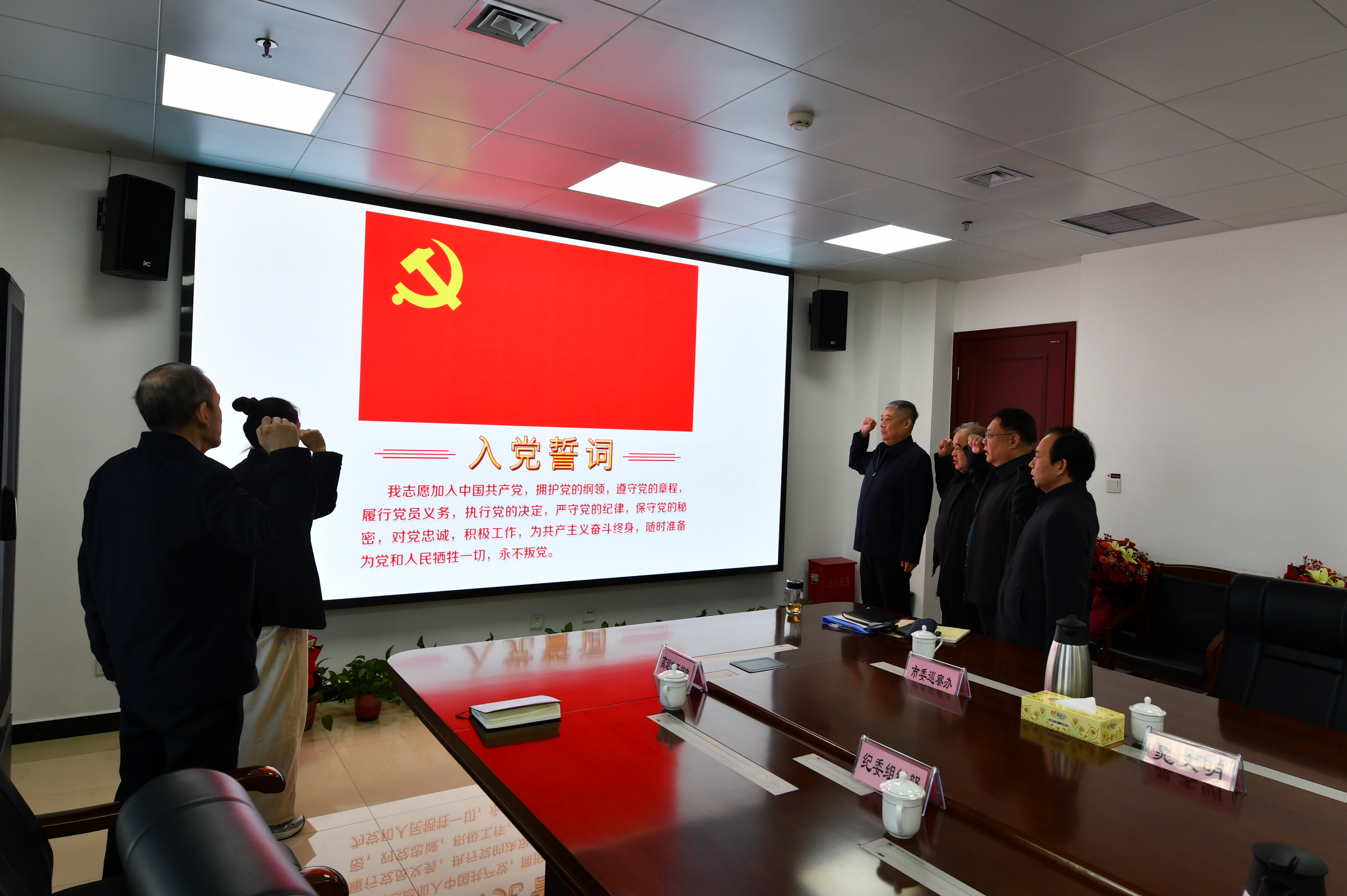 荣誉退休仪式结束后,大家一同重温了入党誓词,深入学习了新修订的《中国共产党章程》《中共中央办公厅 国务院办公厅关于县级以上党和国家机关退(离)休干部经商办企业问题的若干规定》等文件。