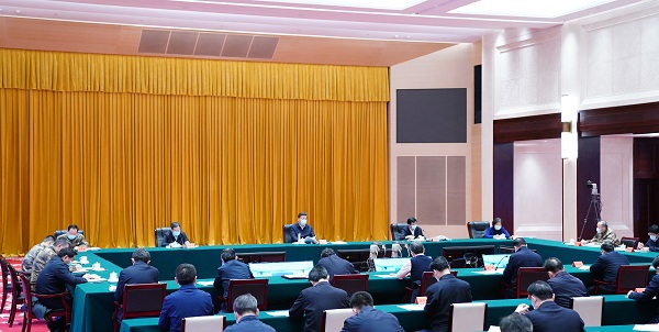 实地考察结束后,习近平主持召开会议,听取中央指导组、湖北省委和省政府关于疫情防控工作汇报。