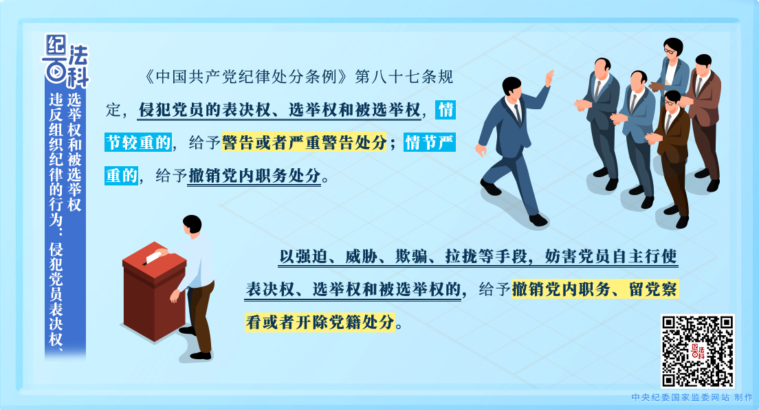 从各地纪委监委通报的典型案例看,一些党员干部和公职人员通过各种手段侵犯党员的表决权、选举权和被选举权,均受到严肃处理。