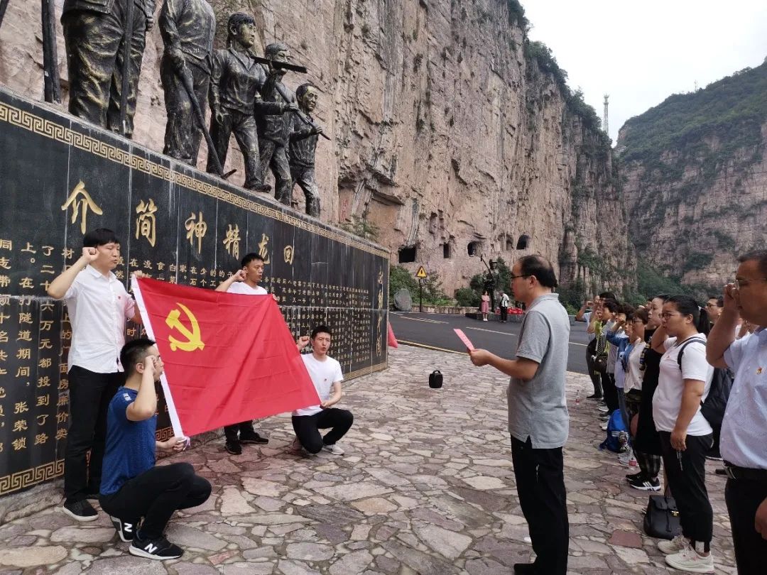 徒步穿越1.1公里挂壁公路,全体党员都被张荣锁书记带领党员群众在万仞绝壁上“劈山凿洞,修筑天路”的艰辛所震撼,被张荣锁书记“心系百姓、艰苦创业、百折不饶、无私奉献”的“回龙精神”所感动。